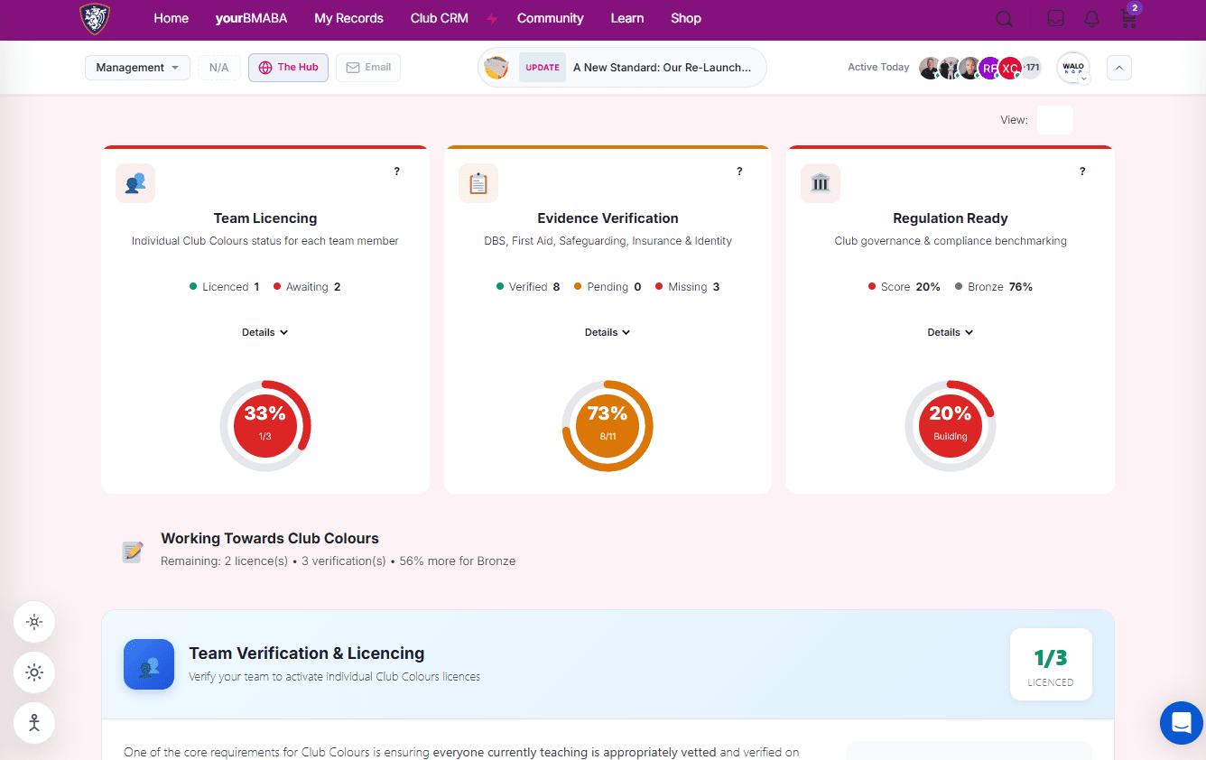 Regulation Ready underpins the entire Club Colours framework. It ensures your club is meeting best-in-class governance and compliance benchmarks, with checks and balances not even matched by Sport England-recognised NGBs. This foundation gives Club Colours its unique credibility and authority.